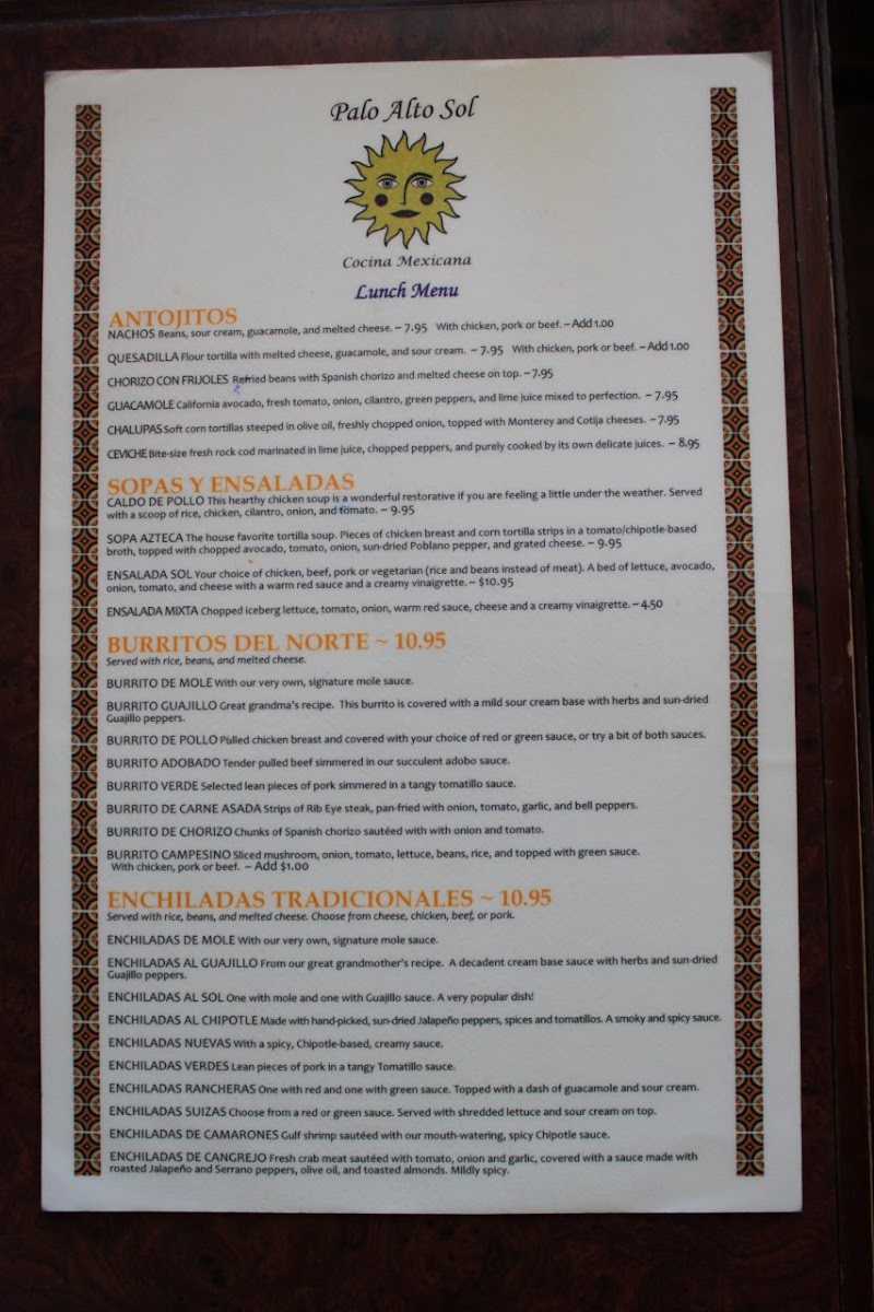 Palo Alto Sol Menu