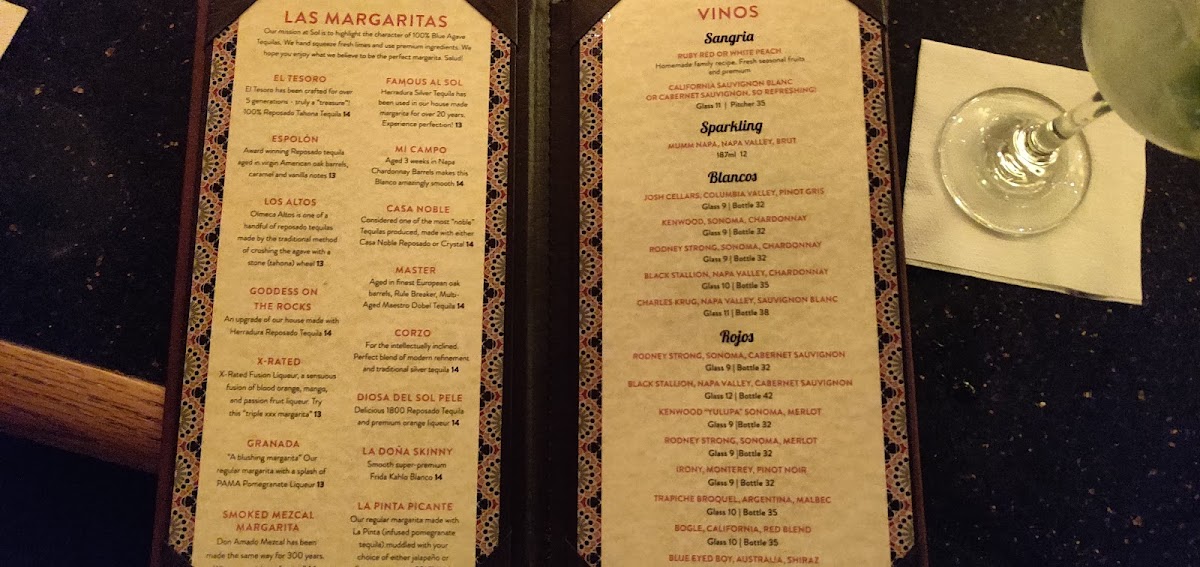 - Margaritas: A diverse selection, including Smoked Mezcal Margarita and La Pinta Picante, pairs perfectly with any meal.